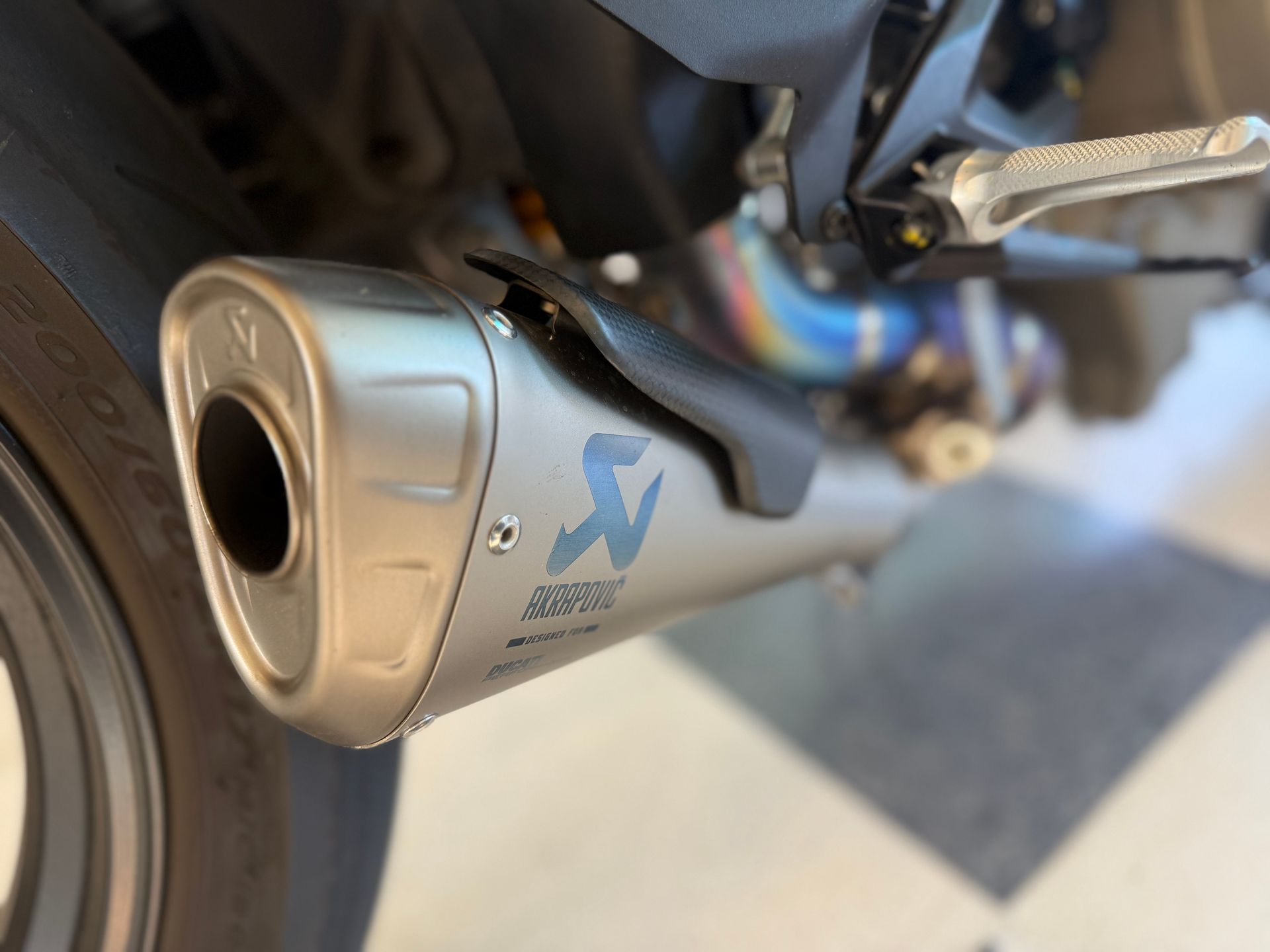 Con KIT SPORT DUCATI originali, scarichi AKRAPOVIC, specchietti retrovisori STEALTH RIZOMA, impianto frenante BREMBO,